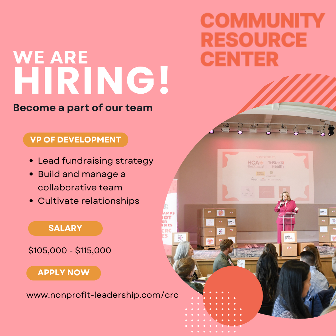 The Community Resource Center (CRC) is seeking a Vice President of Development to lead fundraising and relationship-building efforts that fuel our mission: ensuring hygiene is a human right.